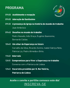 ProjetosCristo na EmpresaEm DestaqueNúcleosLisboa Por ACEGE - Set 25, 2025 667 FacebookTwitterPinterestWhatsApp Caros Associados, A ACEGE uniu-se à Diocese de Lisboa e às organizações de profissionais católicos para celebrar o Jubileu do Mundo do Trabalho da diocese Lisboa. Será uma manhã de encontro entre todos aqueles que querem levar Cristo ao mundo empresarial, tornando-o mais justo e verdadeiro. Veja o programa abaixo e inscreva-se!