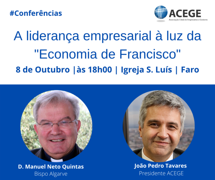 No próximo dia 8 de Outubro, às 18h, o Núcleo do Algarve organiza um evento presencial na Igreja de S. Luís, em Faro, que inicia com uma celebração eucarística presidida por D. Manuel Quintas (Bispo do Algarve), e segue-se uma Conferência sobre o tema “A liderança empresarial à luz da Economia de Francisco”, com o Presidente da ACEGE – João Pedro Tavares.