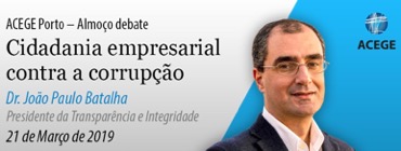 Em mais um almoço-debate da ACEGE PORTO, tivemos a oportunidade de, em boa hora, fazermos uma abordagem sobre um dos temas mais profundos da nossa sociedade, e da Europa, convidando o Dr. Joao Paulo Batalha, Presidente da Transparência e Integridade – Associação Cívica (TIAC), organização ligada à Transparency International (TI), rede global de ONG anticorrupção da qual a TIAC é o capítulo nacional, presentes em mais de 100 países, sendo a sua missão no contribuir para a construção de uma sociedade mais justa e uma democracia de qualidade em Portugal, promovendo a participação cívica, o acesso à informação, a transparência dos processos decisórios e a regulação eficaz dos sistemas e organizações no sentido de reforçar a prevenção e combate à corrupção, promovendo uma ética pública e um verdadeiro sentido de responsabilidade social por parte de todos os agentes económicos, ancorada nas melhores prácticas internacionais sobre boa governação!